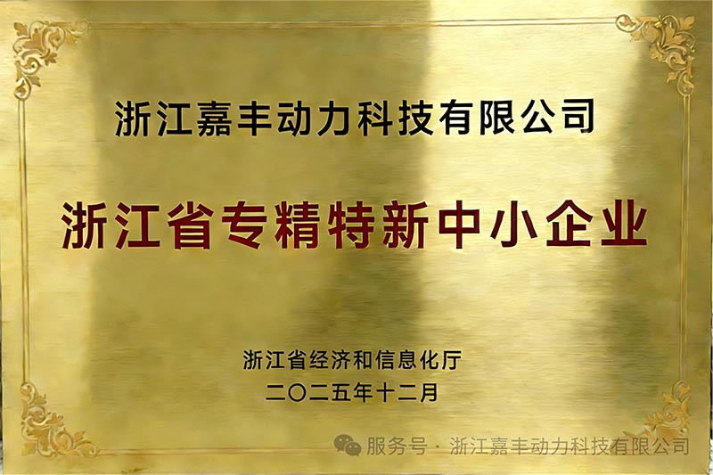 HiljutiZhejiang Jiafeng Power Technology Co., Ltd.(edaspidi "Jiafeng Power") sai põnevaid uudiseid. Tänu oma silmapaistvatele tulemustele professionaalse spetsialiseerumise ja tehnoloogilise innovatsiooni vallas läbis ettevõte edukalt läbivaatamise ning pälvis Zhejiangi provintsis väikese ja keskmise suurusega ettevõtte tiitli "Spetsialiseerunud, rafineeritud ja uuenduslik".
